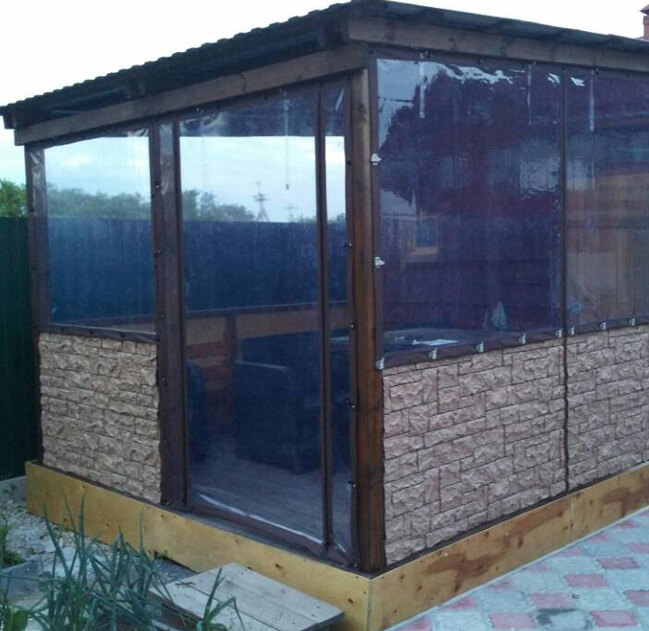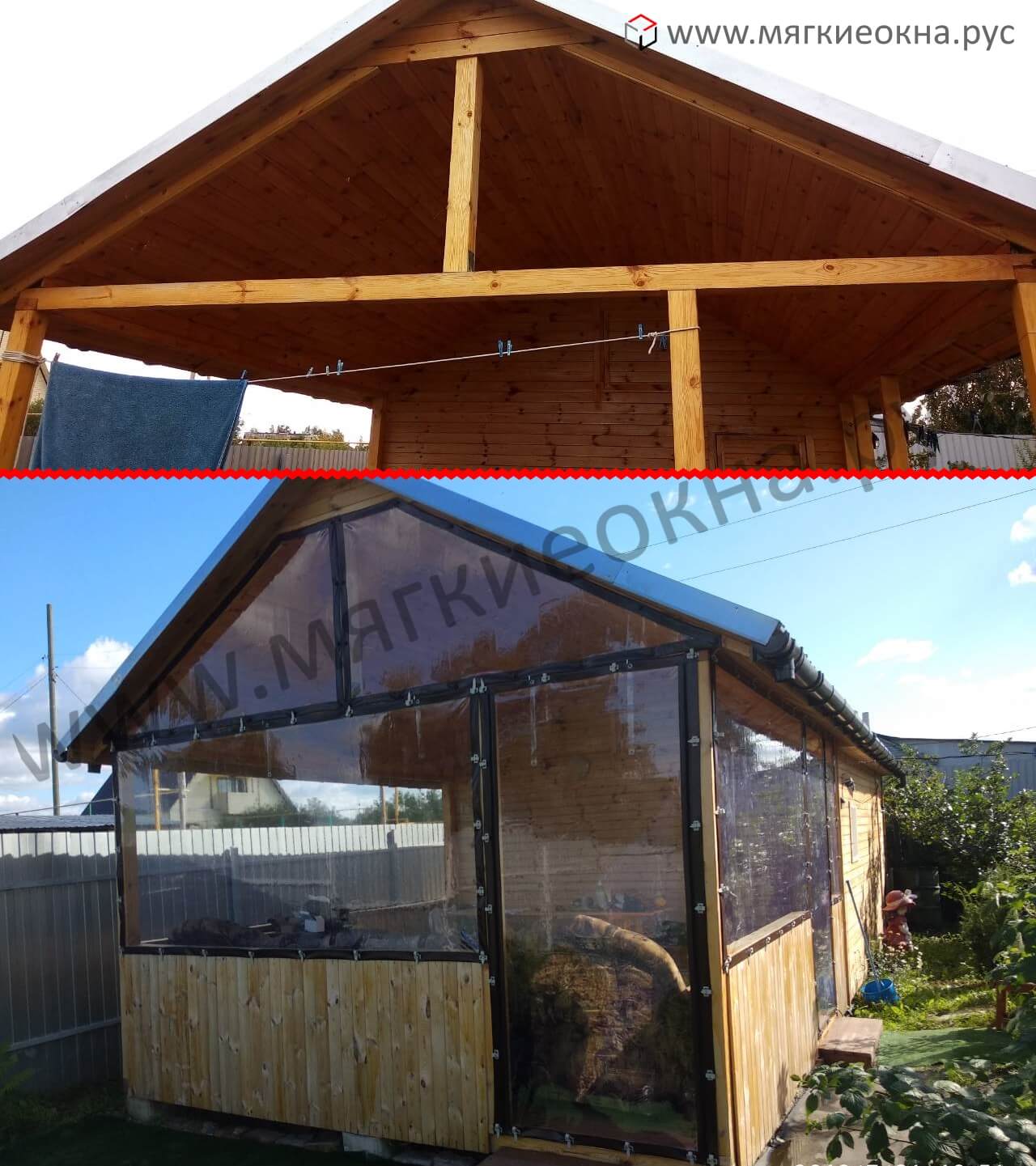 Много лет, живем в частном доме. Постепенно пристраивали беседку и другие хозяйственные постройки. Очень любим, посидеть вечером за чашкой чая. Тишина, свежий воздух. Иногда непогода вносит свои коррективы и заставляет укрываться от дождя внутри дома. Друзья давно предлагают застеклить, но денег лишних нет. Посоветовали поставить мягкие окна. После оформления заявки мастер приехал на следующий день и на месте показал, как все работает.